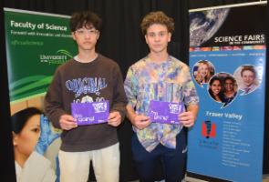 June 2024 - We are so proud of our FVRSF Team: Xauni de Figueiroa, Justin Yu, and Dennis Golubev for representing the Fraser Valley at the Canada-Wide Science Fair (CWSF) held in May. Justin and Dennis brought home bronze for their project, "How successful is zinc oxide as a photocatalyst at removing C13H18O2, or Ibuprofen from wastewater, with the greatest efficiency?"